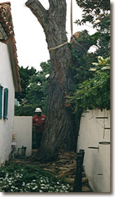 Sometimes this can be done by piecing the tree out which is cutting it in small enough pieces to be dropped safely.