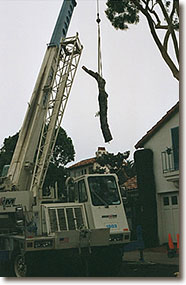 But in some situations, as seen below, the area is too tight and fragile and a crane is safer and more cost effective.